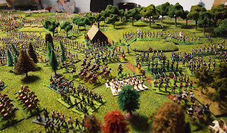 This game was the biggest game of our 'bicetennial series', and of our wargaming lives, to that date. It marked the culmination of a 30-year wargaming plan (and dream) for Mark and was something that Julian and I just thought would never be possible. It took nearly 12 months of detailed planning, scenario-development, painting, terrain making and preparation from the three of us.